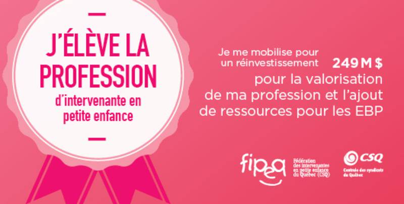 D’autre part, la présidente de la FIPEQ-CSQ ajoute que ces sommes devraient également servir pour la valorisation de la profession d’intervenante en petite enfance.