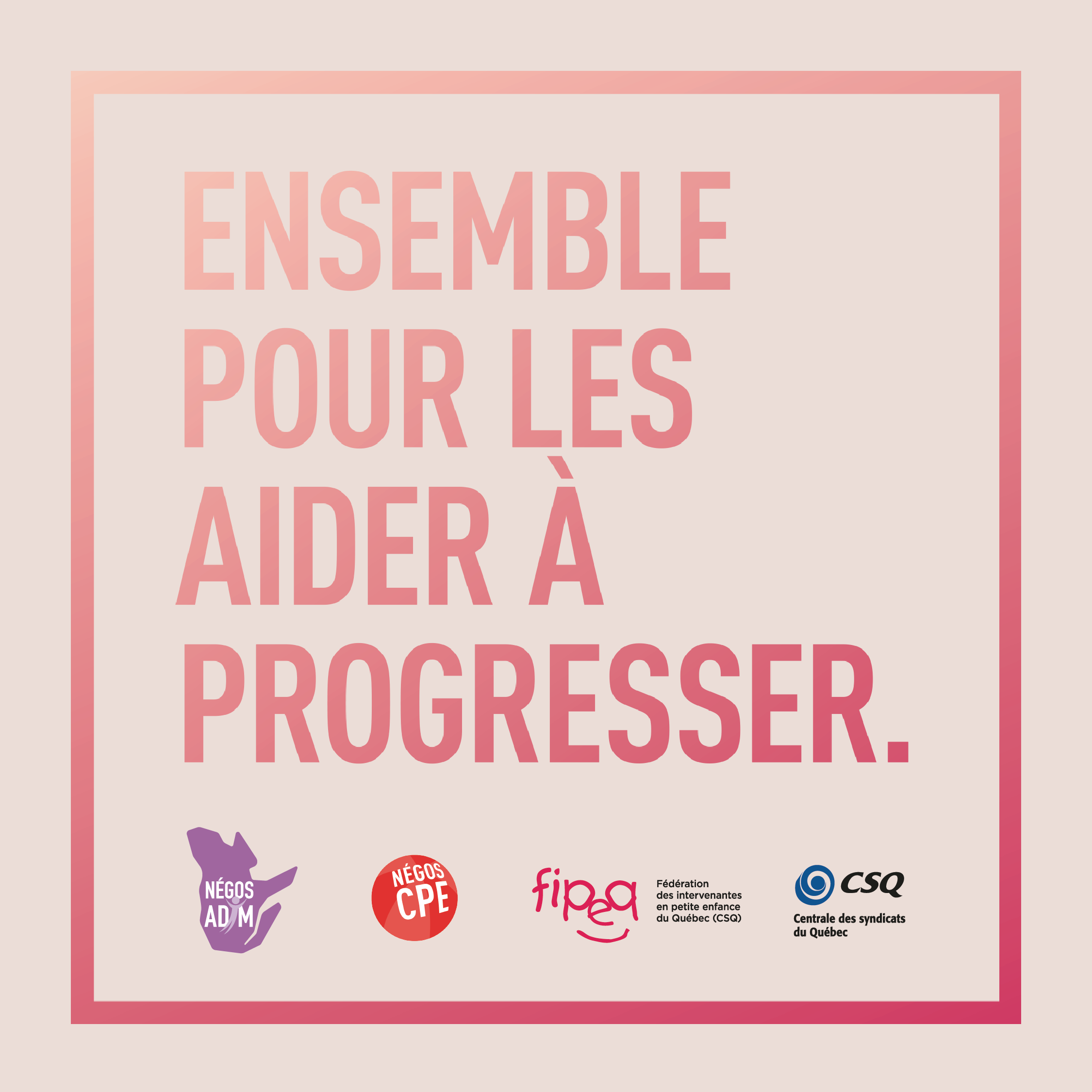 Les membres de la Fédération des intervenantes en petite enfance du Québec (FIPEQ-CSQ), étant sans contrats de travail depuis presque un an, la FIPEQ-CSQ est dans l’incompréhension face au manque de disponibilité et d’engagement du gouvernement pour négocier les conditions de travail des intervenantes en petite enfance. La FIPEQ-CSQ est disponible pour faire progresser les discussions aux tables de négociation et demande au gouvernement d’augmenter le rythme et l’occurrence des rencontres.