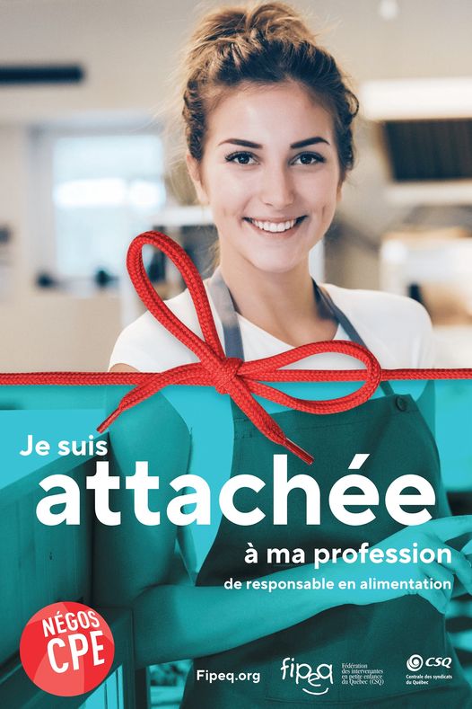 La Fédération des intervenantes en petite enfance du Québec-CSQ (FIPEQ- CSQ), la Fédération de la santé et des services sociaux-CSN (FSSS-CSN) et le Syndicat québécois des employées et employés de service (SQEES-FTQ) participent conjointement depuis quelques mois à un comité paritaire national avec le ministère de la Famille, le Secrétariat du Conseil du trésor et les représentants des employeurs des centres de la petite enfance (CPE). Ce comité a été mis en place dans le but d’évaluer l’emploi de responsable en alimentation-cuisinière à la suite d’une lettre d’entente s’appliquant du 1er avril 2020 au 31 mars 2023.